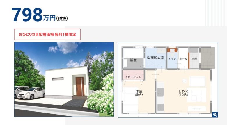 | 特徴 | 安さを重視した自分サイズの暮らしを叶えたい方に最適。土地購入からの計画でも驚きの安さを実現可能。 |