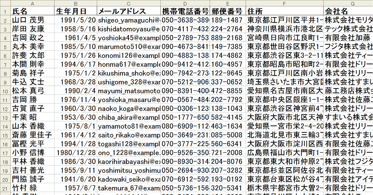 アプリケーションのテストなどで利用できる、リアルな架空の個人情報データ(疑似データ)を生成するツールです。